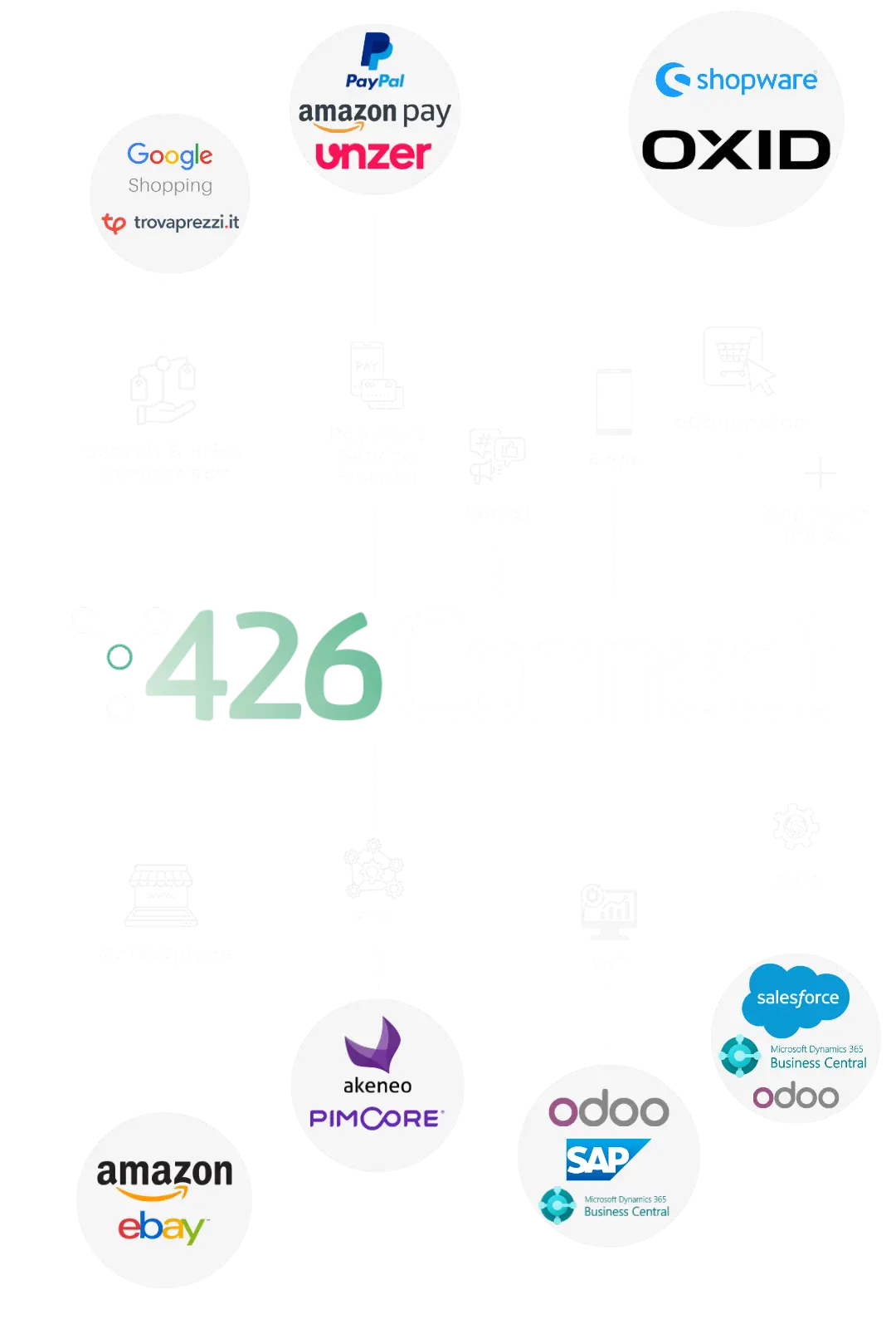 Der große Vorteil von 426Connect liegt in der nahtlosen Integration mit Ihrem bestehenden System sowie in der flexiblen Anbindung an verschiedene Anwendungen. So lässt sich die Plattform nicht nur als Omni-Channel-Verkaufstool für Ihr E-Commerce-System nutzen, sondern kann auch mit PIMs, ERPs (z.B. SAP®) oder anderen Services und Systemen verknüpft werden. Durch unsere modulare Plattformarchitektur sind wir in der Lage, eine schnelle und kosteneffiziente Integration in Ihre aktuelle E-Commerce- oder Systemlandschaft zu realisieren.